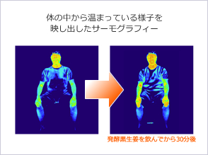 | 結果,食用発酵黑生姜後30分鐘,體溫和血液循環明顯改善。 | ||||||