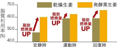 | 薑一直也是常吃的食物,所以是非常安全的食用材料。発酵黑生姜以日本獨有的專利製造技術生產,有效成分薑烯酚的含量比一般生薑高57倍。九州大學和福岡大學先後研究其成效,並進行了臨床測試。 | ||||||